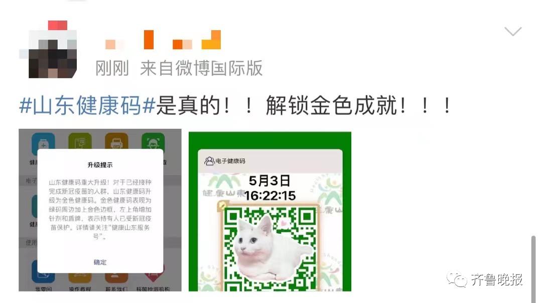 今天,#山东健康码金色皮肤#冲上热搜!