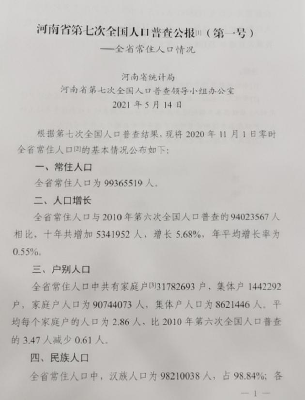 在发布会现场获悉,截至2020年11月1日零时,全省常住人口共9936.6万人,占全国人口的7.04%,位居全国第三。与2010年第六次人口普查的9402.4万人相比,增加534.2万人,增长5.68%。我省人口十年来继续保持平稳增长态势。