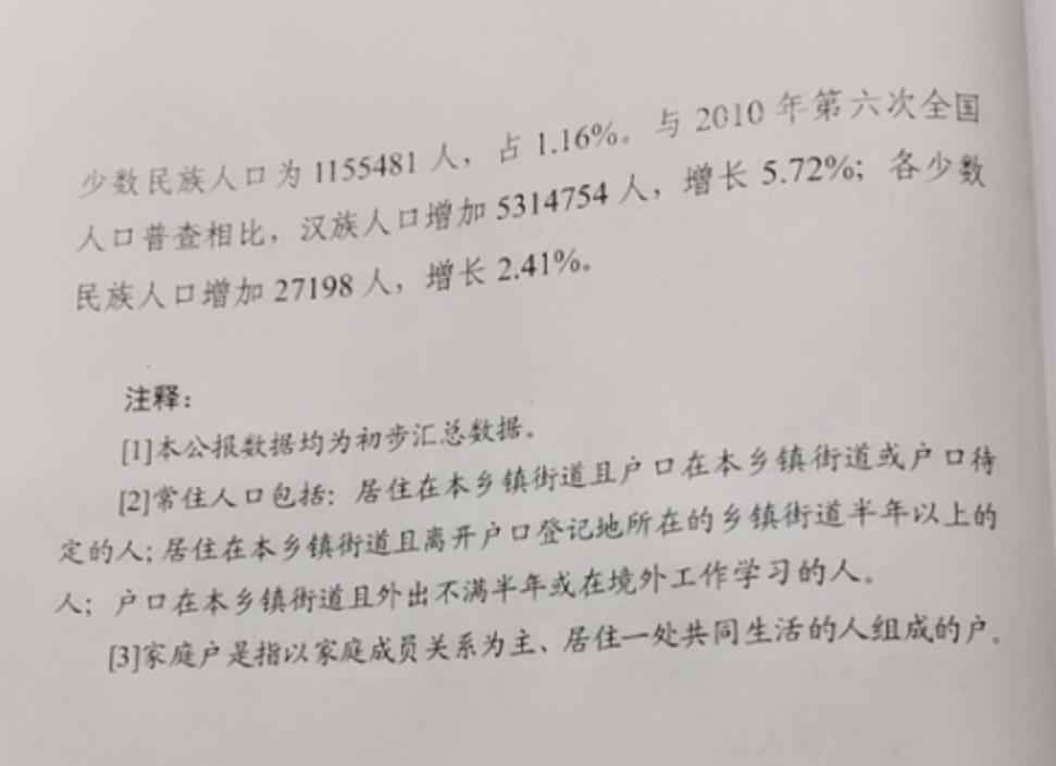 普查主要数据: