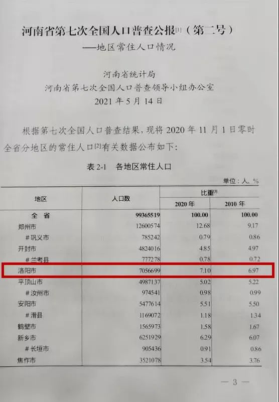 刚刚公布!洛阳常住人口705万!