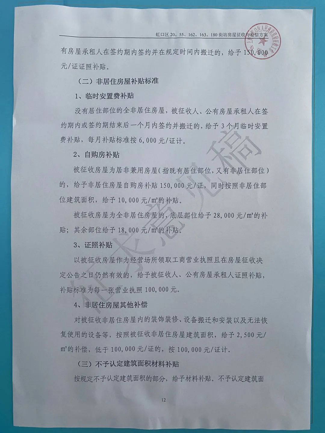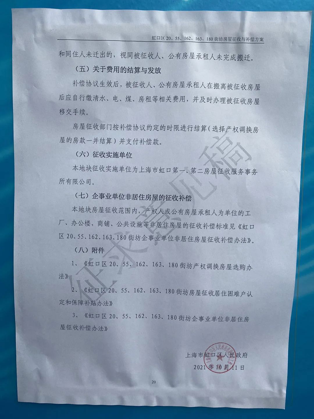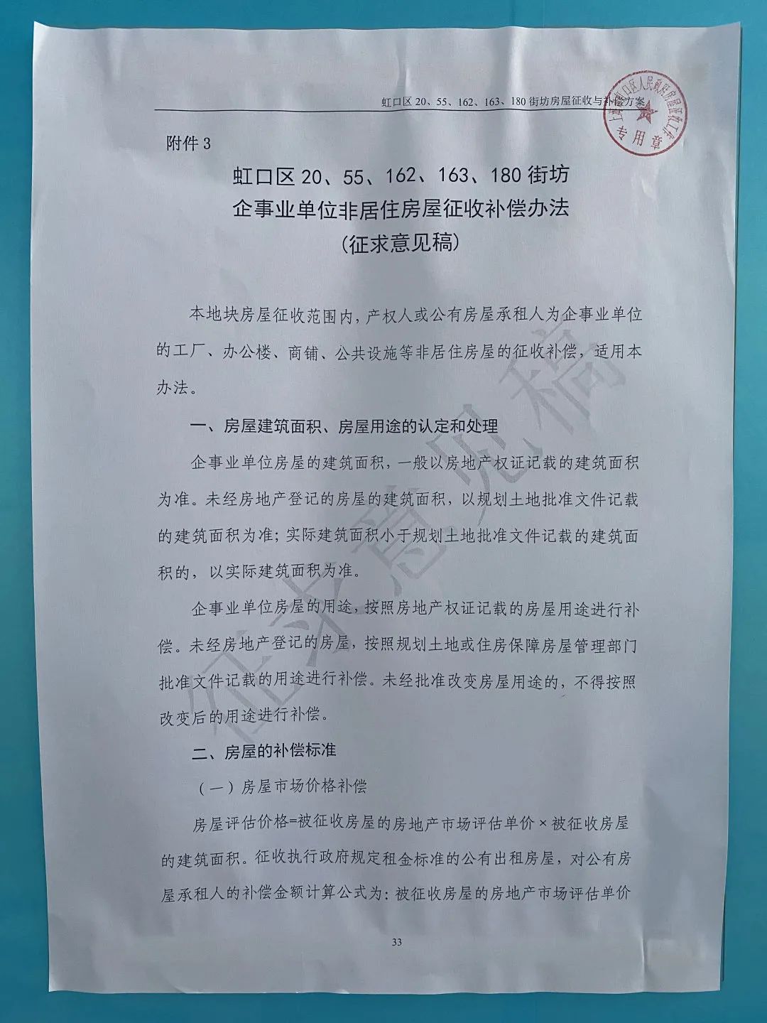 附件3 《虹口区20、55、162、163、180街坊企事业单位非居住房屋征收补偿办法》