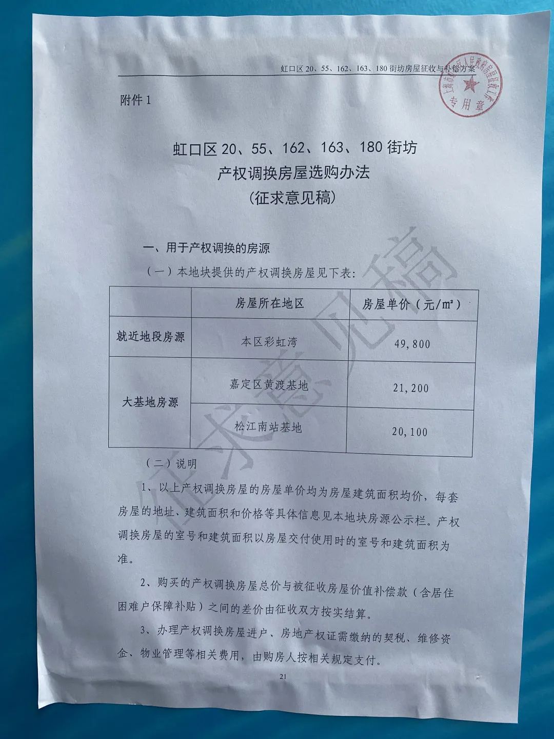 附件1 《虹口区20、55、162、163、180街坊产权调换房屋选购办法》(征求意见稿)