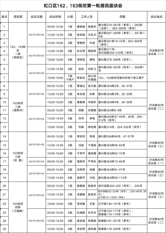 居民如有疑问或意见建议,可根据自己房屋所在地址门牌,与征收事务所经办人员联系,或将书面意见建议投入沙泾路82号门口意见箱,由街道旧改分指挥部及时开箱收集汇总上报。