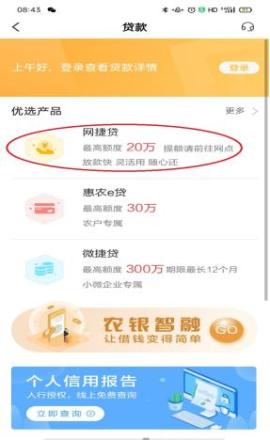 点击农行掌银“贷款”(图1)→“网捷贷”(图2)图标→立即申请即可。