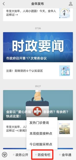进入“金华发布”主页菜单栏