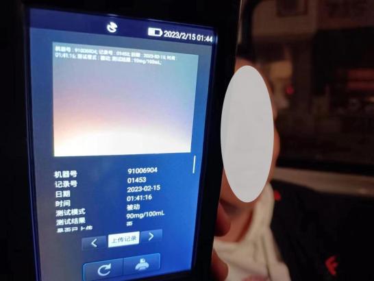 酒精测试初检数值:90mg/100ml