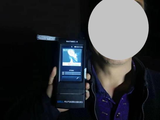 酒精测试初检数值:92 mg/100ml