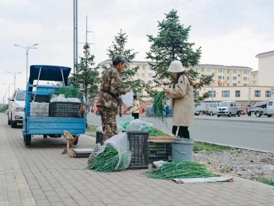 ●韩莉在路边的蔬菜摊买菜,准备回家给女儿做饭。