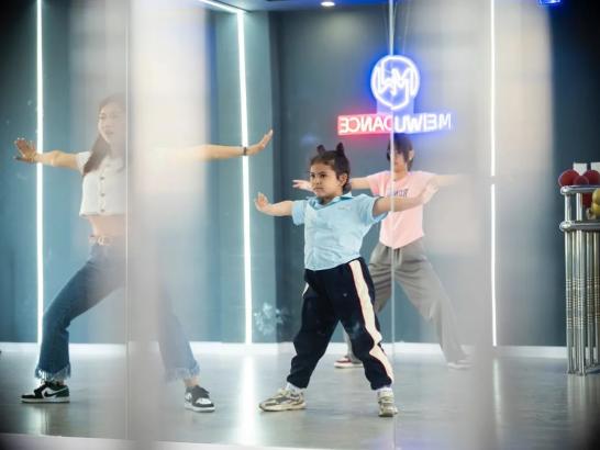 ●周末张薇的女儿在舞蹈班学习舞蹈。