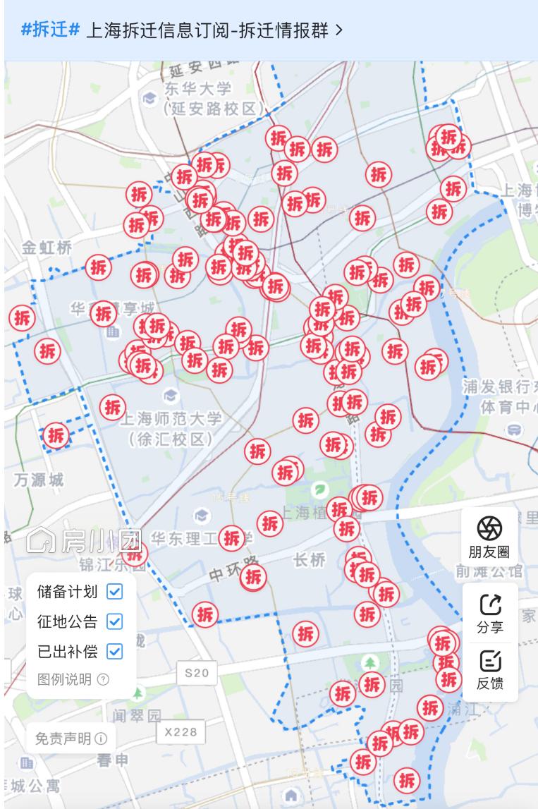 在房小团的这个app上,点开徐汇现有的征地拆迁公告,密密麻麻,呈现出越来越猛烈的趋势...