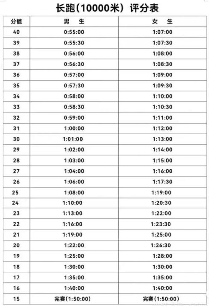 近日,多名IP显示为天津的网友在社交平台发帖,称南开大学体测要跑10000米。根据网友晒出的南开大学10000米长跑评分表,男生满分标准为55分钟,女生满分标准为67分钟,男女生最低完赛标准为110分钟。