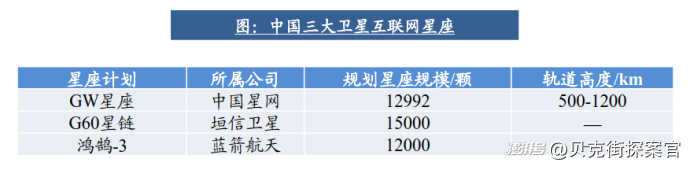 在卫星宽带成本下降、日益凸显的国家战略地位、稀缺的空间频轨资源等多成因素推动下,我国除中国星网外,还有上海垣信(G60千帆星座)、以及蓝箭鸿擎科技(鸿鹄-3星座)两个万颗星座计划。