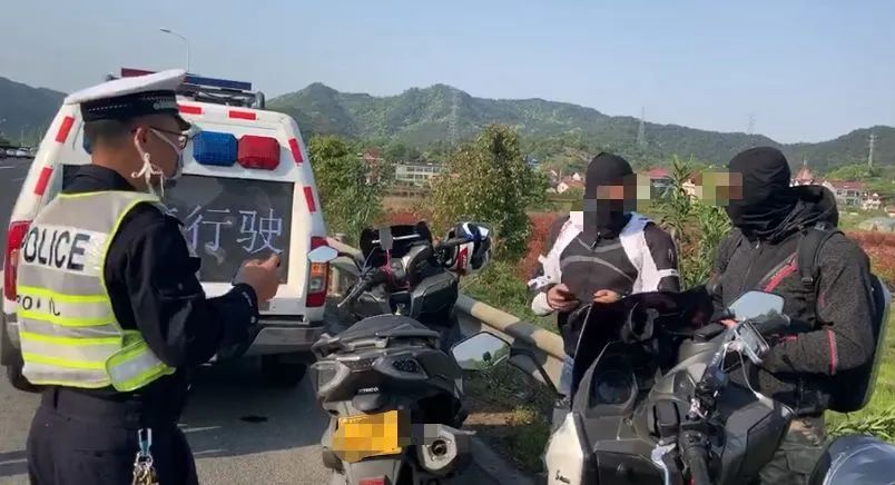 4月12日下午15时30分许,高速交警绍兴支队指挥中心发现两辆摩托车在杭金衢高速往杭州方向快速行驶,四大队交警邵可为接到报警后第一时间前往现场处置。