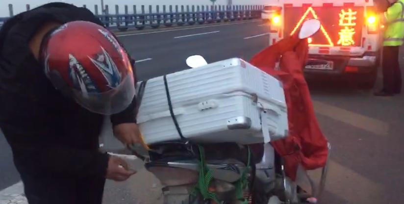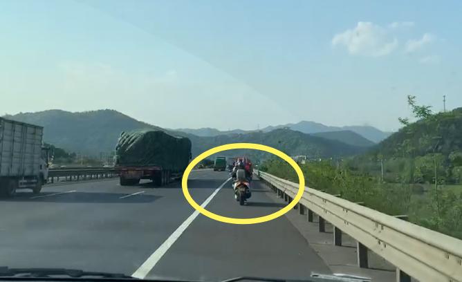 下文的这位小伙儿骑摩托上高速就陷入了这样的困境。