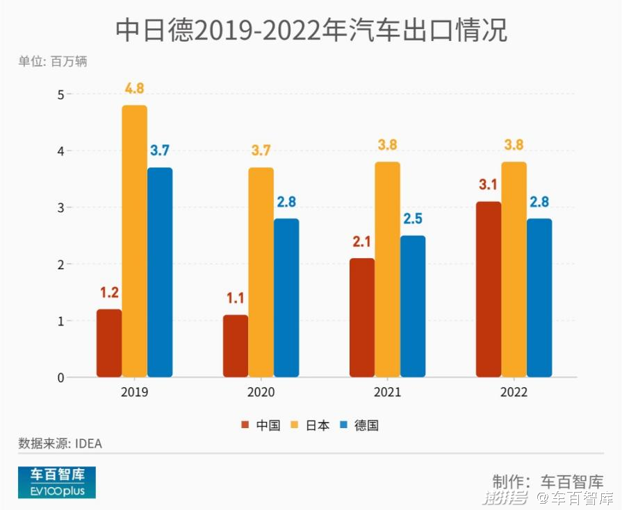 具体来看,2021年,我国201.5万辆的出口量,已经超出韩国152万辆近25%,仅次于日本的382万辆和德国的230万辆,成为全球第三大汽车出口国。