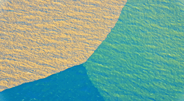 形成了独特的黄蓝交汇奇观