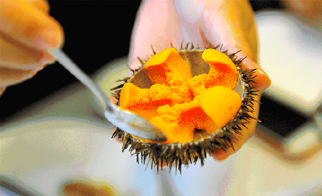 海胆不但味道鲜美,营养价值也很高,每100克鲜海胆黄中含蛋白质41克、脂肪32.7克,还含有维生素A、D各种氨基酸及磷、铁、钙等营养成分。海胆还可以生产加工成为盐渍海胆、酒精海胆、冰鲜海胆、海胆酱和清蒸海胆罐头等多种海胆食品。海胆的吃法多种多样,不论是新鲜的海胆卵(黄)或是经过加工的任何系列品种,都可用于清蒸煎炒、冷盘或烹调成汤。