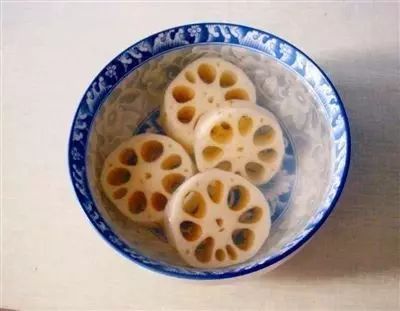 果藕的吃法也有讲究。把果藕冲洗干净,接着用大木盆放上凉水,把果藕放在水中泡着,再从冰箱里取些冰块投进水里,据说这样用凉水拔一会儿再吃更清爽也败火。半小时之后,把藕捞出来放到菜板上切成很薄很薄的片,装在碟子里,再配一碟白糖,一家人用筷子夹着藕蘸着白糖吃,也实在是一种享受。