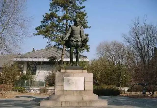 塞万提斯(Miguel de Cervantes Saavedra, 1547—1616)是西班牙著名作家,著有小说《堂吉诃德》。北大的塞万提斯铜像高235厘米,身着西班牙披风,右手持书卷,左手抚剑柄——可惜腰挎的宝剑剑身已经被人折断丢失。