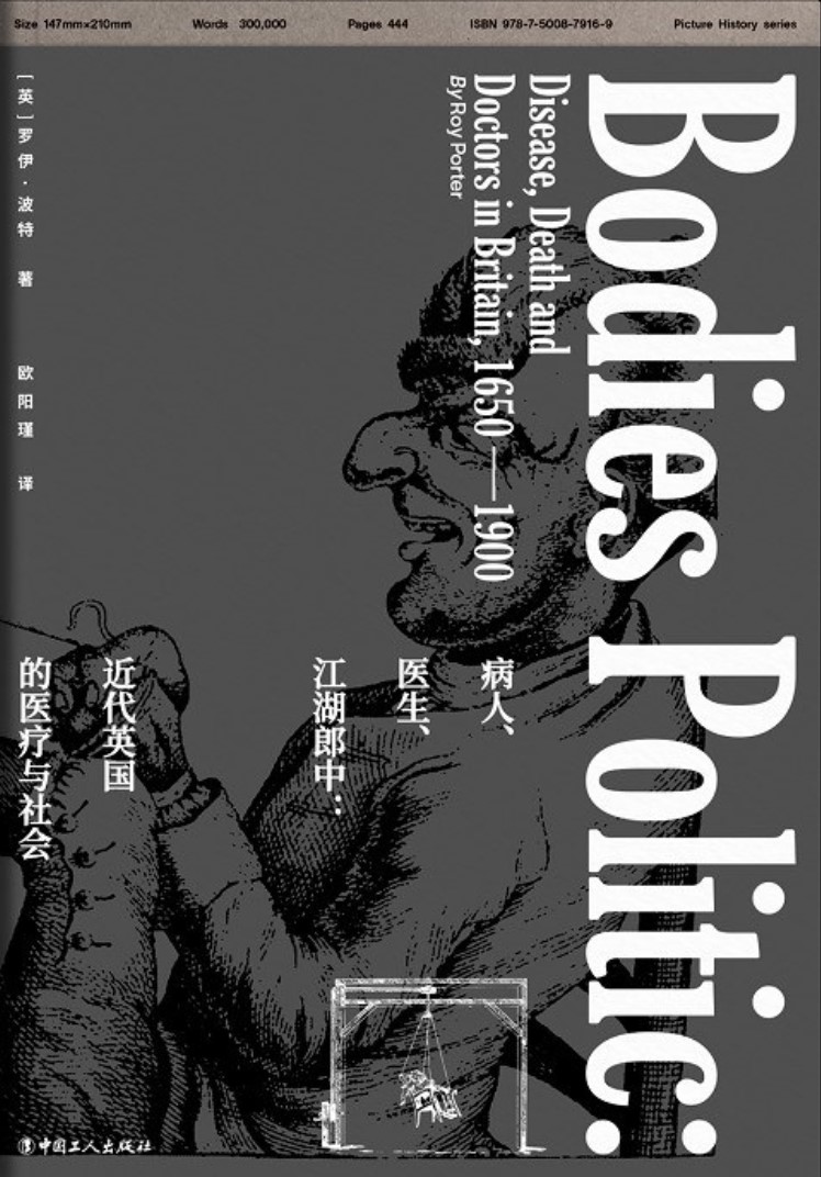 该书原英文标题为Bodies Politic: Disease, Death, and Doctors in Britain, 1650-1900,或可直译为《身体政治:1650-1900年不列颠的疾病、死亡与医生》。虽然全书研究时段跨度长达二百五十年,但最核心的时段却是作者长期关注的“漫长的十八世纪”(1680-1820)。罗伊·波特将人的生命历程看作一个“尘世舞台”,医生、病人、疾病与身体轮番登场,演出着一幕幕的滑稽剧、讽刺剧与道德剧。医疗世界不仅仅包含科学与技术,它的戏剧性、奇特性乃至神秘性也成为了观察社会文化的绝佳透镜。正如书中所言:“医学集劝诫与教诲为一体,是精神和心理治疗的工具,是讽刺的尖刀,是道德说教的媒介,是社会的安慰剂或腐蚀剂。”