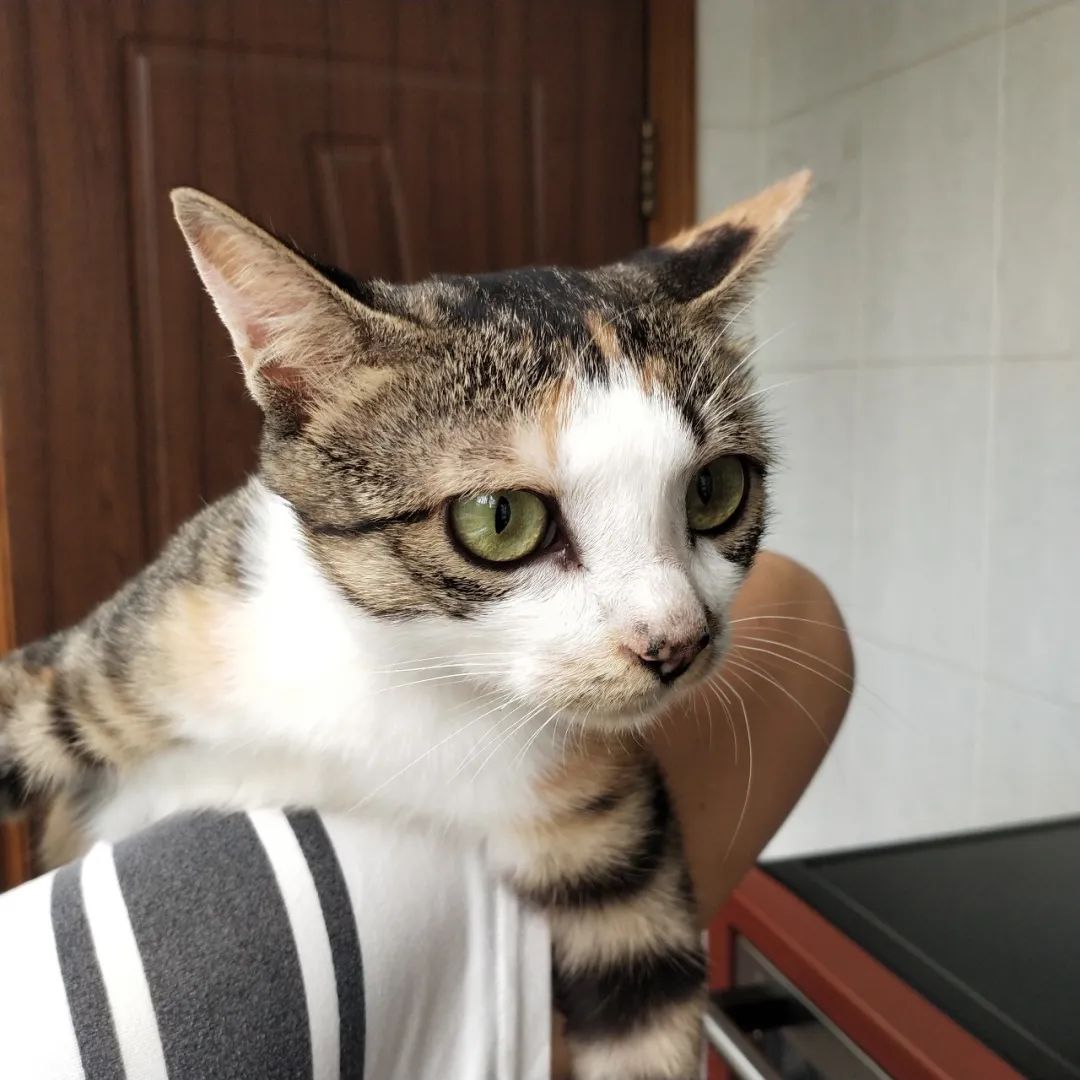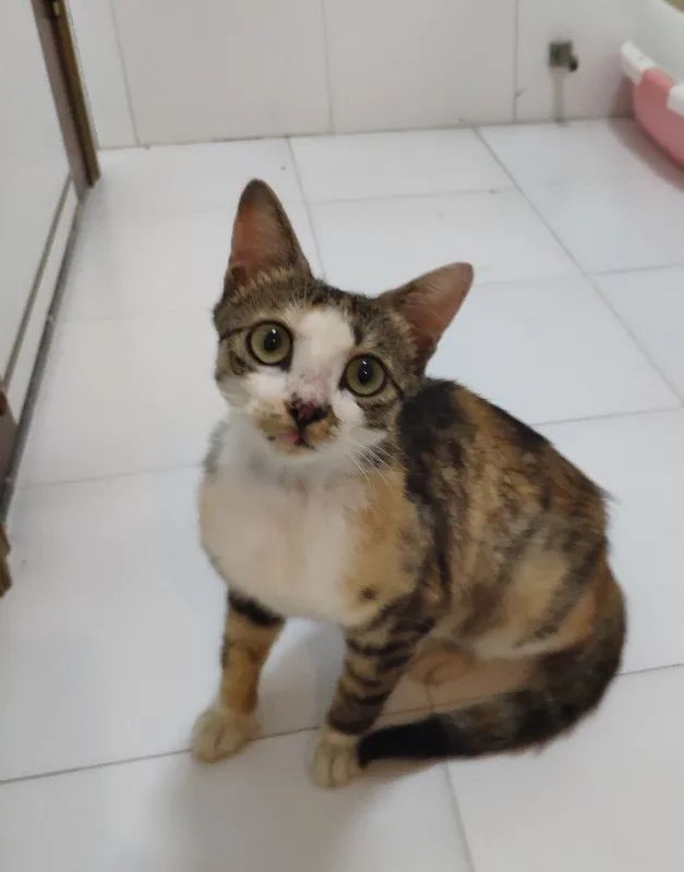 这只彩色狸花妹妹现在不到一岁,3个月前曾被人领养,但上周那位领养人联系我说工作变动无法再继续养了,所以现在想我给猫猫再找个新的领养人,猫猫已做了绝育手术。