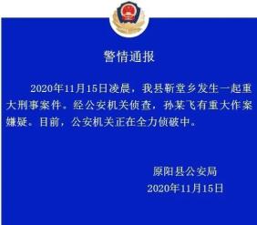 ▲11月15日,河南新乡。凌晨5时许,原阳县靳堂乡娄凤鸣庄村发生命案,6人当场死亡,包括3名成年人和3名小孩。同村人孙某飞有重大嫌疑,目前当地公安正在全力侦破中。据当地村民称,两家之间并无矛盾,甚至前天(13日)时,两家关系还和正常街坊一样。