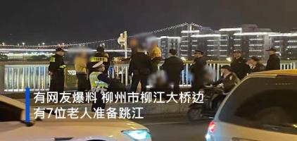 ▲近日,广西柳州。有网友爆料,柳州市柳江大桥上,有7人准备跳江。据当地派出所民警称,准备跳江的为7名残疾人,因为三轮车被城管收走了,希望用跳江的方式要回。目前,警方已将7人带回,具体情况还在进一步调查中。