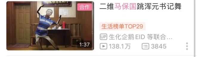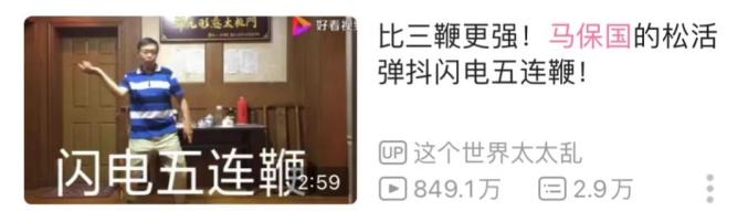 网友把马保国发布的视频作为素材,在此基础上加工而成的各式视频,更是屡屡登上各视频网站或APP的显眼位置,且播放量令人咋舌,弹幕、点赞等互动居高不下。