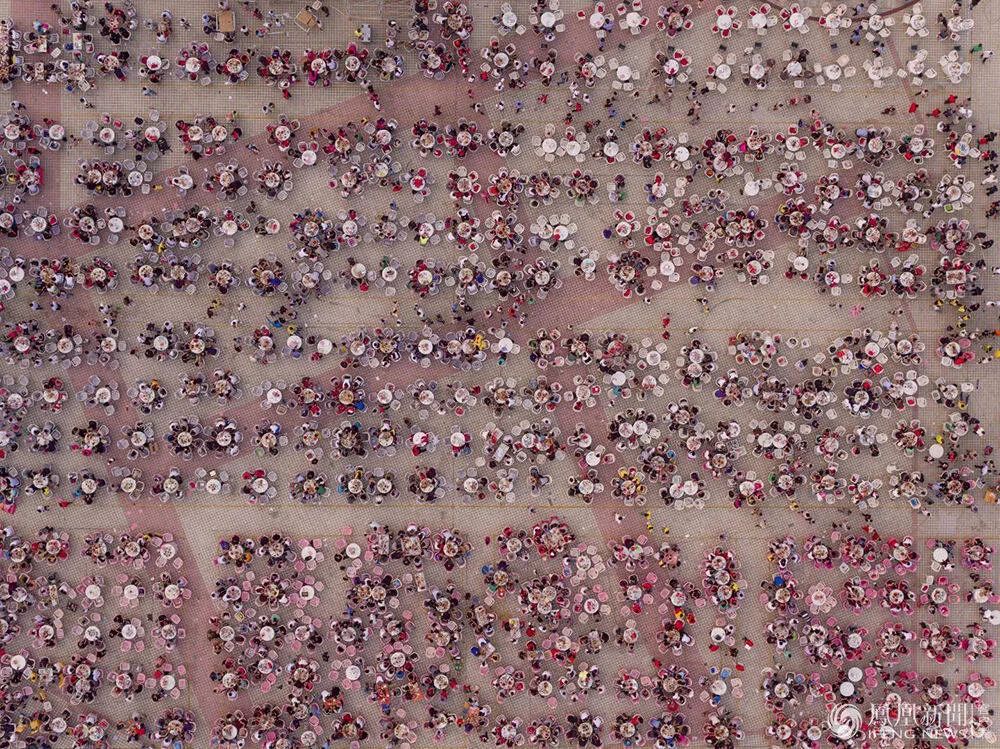 George Steinmetz也非常热衷于航拍,他的组图里最具冲击力的照片是一张航拍作品,从高空俯拍下江苏盱眙县成千上万人聚集在一起庆祝小龙虾节的热闹场景。