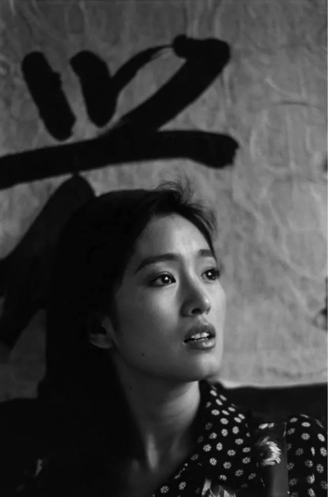 这是在张艺谋导演的电影《红高粱》片场所拍摄的照片。照片里的巩俐眼神清澈,时间仿佛在此刻凝固了。