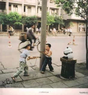 在那个还没有手机互联网的时代,小朋友们的生活可能是最富有趣味和童真的。即使双方的语言不通,但你仍然看到摄影师对于中国小朋友们童趣的捕捉。