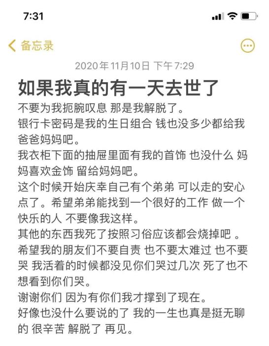 那会压力很大,感觉被生活折磨得受不了,写完这个类似遗书的东西反而轻松了不少。