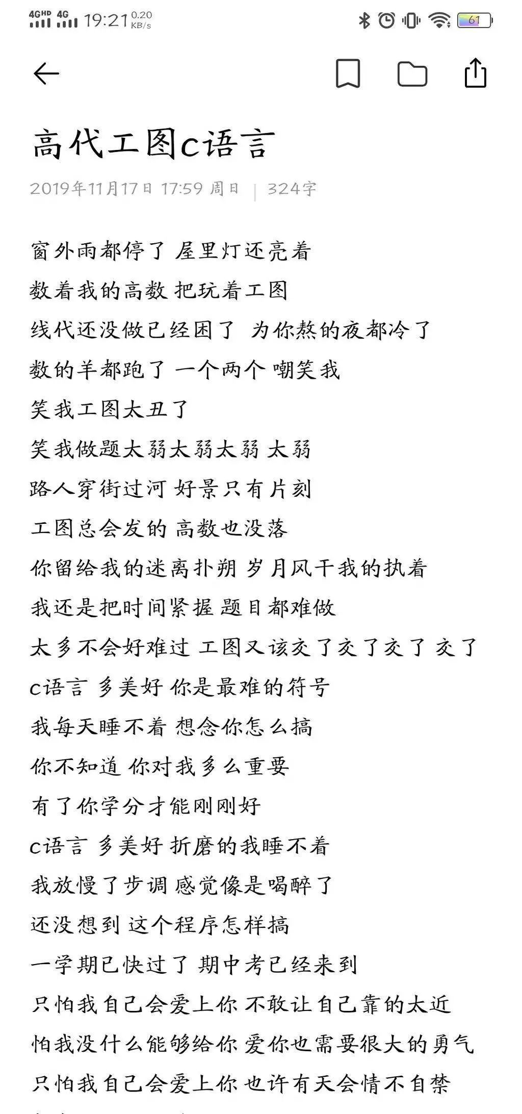 全宿舍一起参加的某个活动需要才艺表演,于是将走马,小酒窝,情非得已三首歌的歌词改编并串烧了一下。