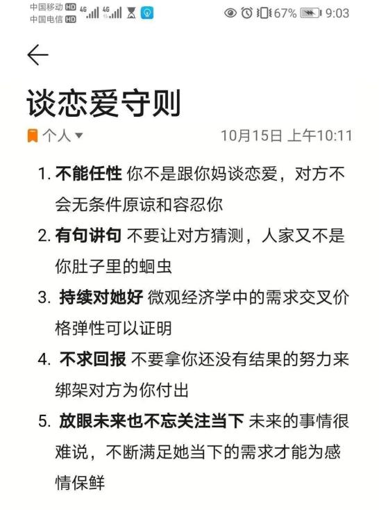 这个是我在他备忘录里发现的,当时看到他写下这样的话,还默默感动了好久,结果还是变成了前男友。
