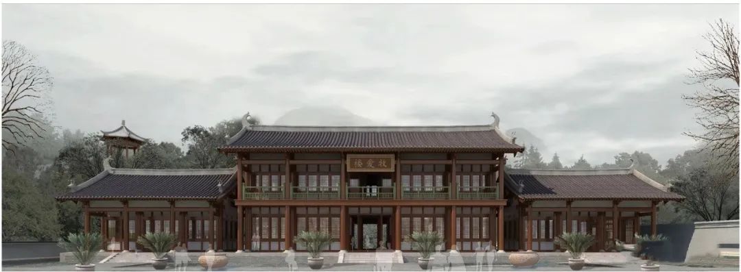 ▲瑞州府衙知府廨牧爱楼(效果图)知府廨后楼名为牧爱楼,双层悬山建筑,面阔五间,进深三间。后有抱厦三间。通面阔20.79m,通进深14.22m。