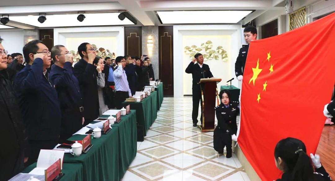 (2019年12月2日,举办国家机关工作人员宪法宣誓活动)同时,实现了国家工作人员参加旁听庭审活动制度化、国家工作人员网络在线学法和普法考试制度化。截至目前,全盟共组织网络在线学法考试14次,1055家单位的42392名国家工作人员参加学法,累计参学人员达21万人次。