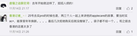 而对渠道一向管理严格的苹果,其实也有不少捆绑销售的现象。11月15日是iPhone 12mini、iPhone 12 Pro Max可以直营店取货的日子,不少苹果直营店员工会反复推销用户选购1398起的Apple Care+服务。有网友表示“去年开始就这样了,挺招人烦的。“
