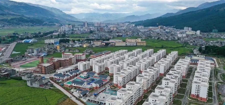 △四川省凉山彝族自治州越西县城北感恩社区,图据央视新闻《四川省人民政府关于批准普格县等7个县退出贫困县的通知》指出,根据《中共中央 国务院关于打赢脱贫攻坚战三年行动的指导意见》《中共中央办公厅 国务院办公厅印发〈关于建立贫困退出机制的意见〉的通知》和《中共四川省委办公厅 四川省人民政府办公厅关于印发〈四川省贫困县贫困村贫困户退出实施方案〉的通知》精神,凉山彝族自治州普格县、布拖县、金阳县、昭觉县、喜德县、越西县、美姑县7个国家级贫困县已达到贫困县退出有关指标,符合贫困县退出条件,经省人民政府研究,同意上述县退出贫困县。