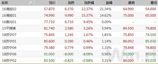 上周大跌的信用债周一走势出现分化,“16清控01”收涨15.37%,“16清控02” 收涨12.37%,盘中一度涨逾26%被交易所实施临停;苏宁以及魏桥旗下多只个债小幅收涨,涨幅多在1%以下;但“18苏宁06”收跌逾8%,该债应于11月16日付息。中信建投指出,近期信用债事件频发,国企信仰被进一步打破,短期情绪宣泄后,信用内部分化加剧,关注债市超跌机会,但中期维度来看,信用利差仍薄。