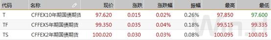 受宏观数据亮眼压制,国债期货冲高回落后涨幅持续收窄,10年期主力合约收涨0.02%,5年期主力合约涨0.04%。交易员称,央行大规模流动性的投放,一定程度上缓解了债市情绪,早间公告发出后,国债期货一片飘红,但随后经济数据发布后逐渐回落。