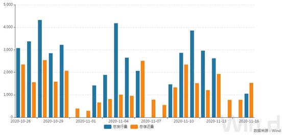 Wind数据显示,11月累计有6000亿元MLF到期,其中,11月5日有4000亿元MLF到期,11月15日有2000亿元MLF到期。