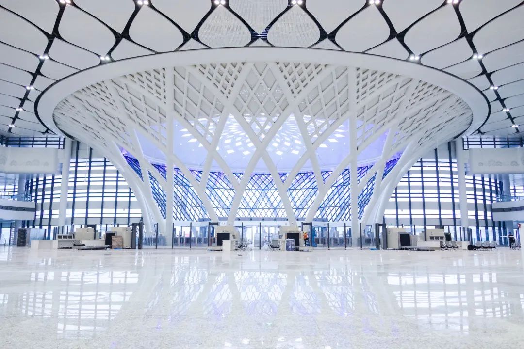 站房的正面融合了“生命之树,小鸟天堂”的造型特点,以钢结构构成树状编织筒,划分出进站大厅区域。