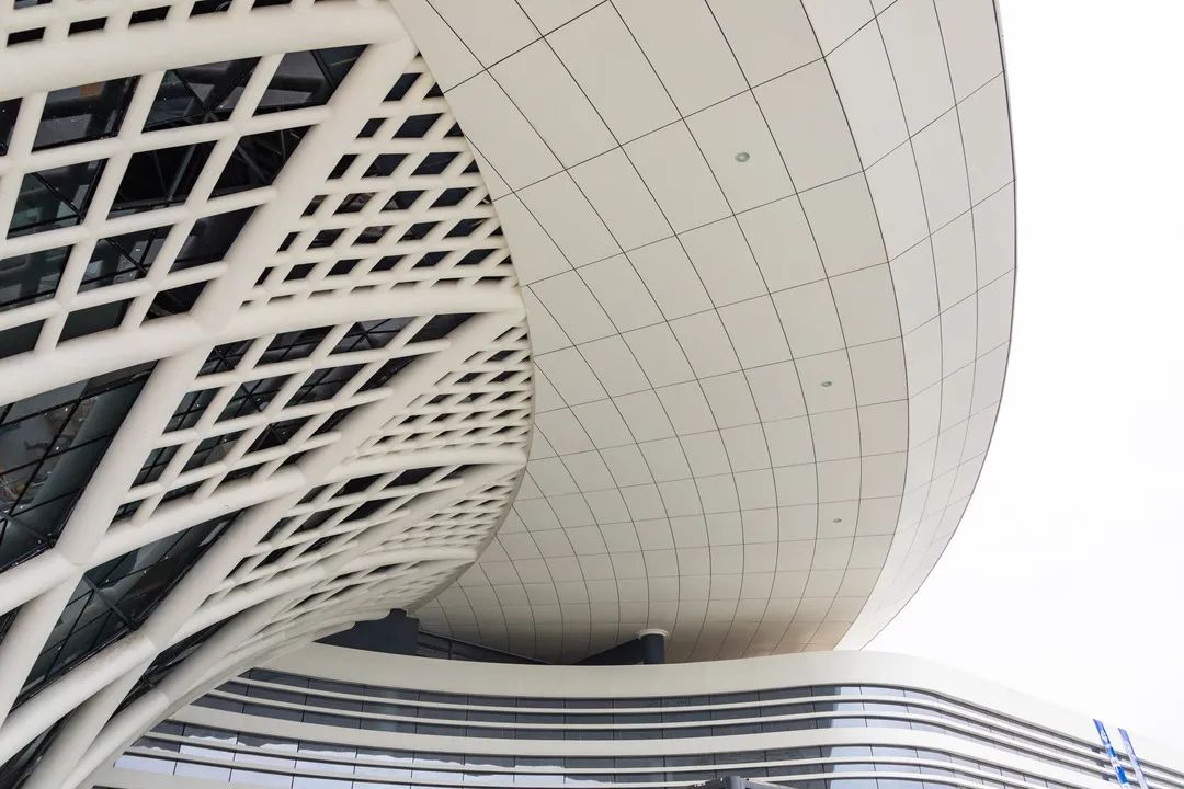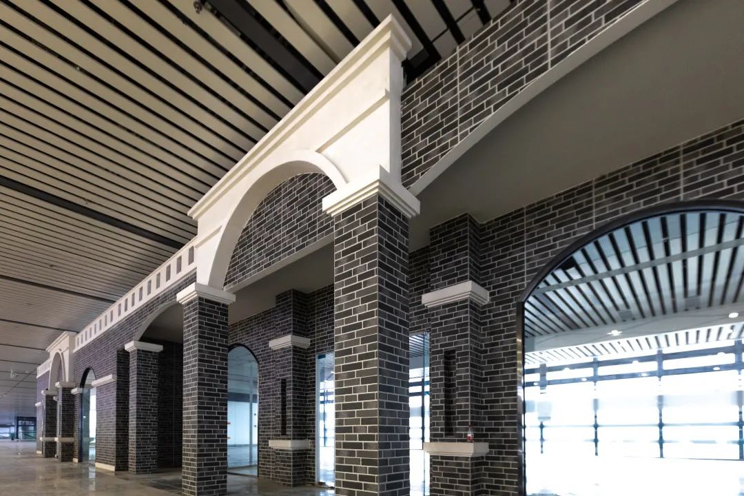 与落客平台相连接的是江门站高架层,主要由铝板幕墙、玻璃幕墙、金属屋面等构成。