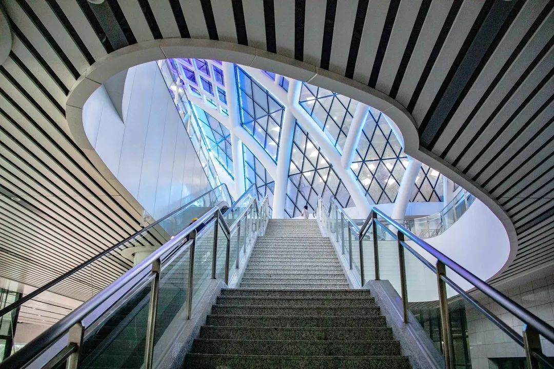 地下三层平行场站方向预埋了轨道交通一号线的主体结构。旅客出站后向西走,可直接进入预留的轨道交通站厅。总的来说,江门站通过立体式布局,将交通功能、商业开发、城市景观融为一体,成为集铁路、公路、城市轨道交通、公交、出租车等多种交通方式于一体的综合交通枢纽。