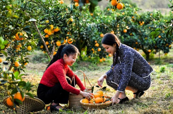11月10日,赣南脐橙正式开摘,钟维母女开始采摘自家果园的脐橙。3