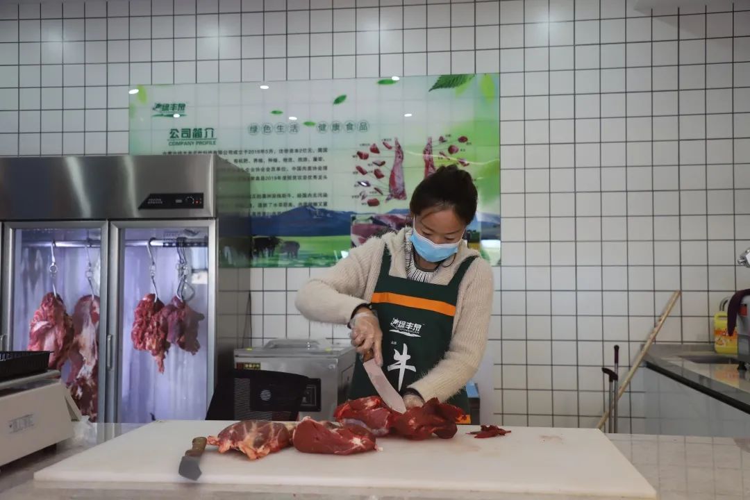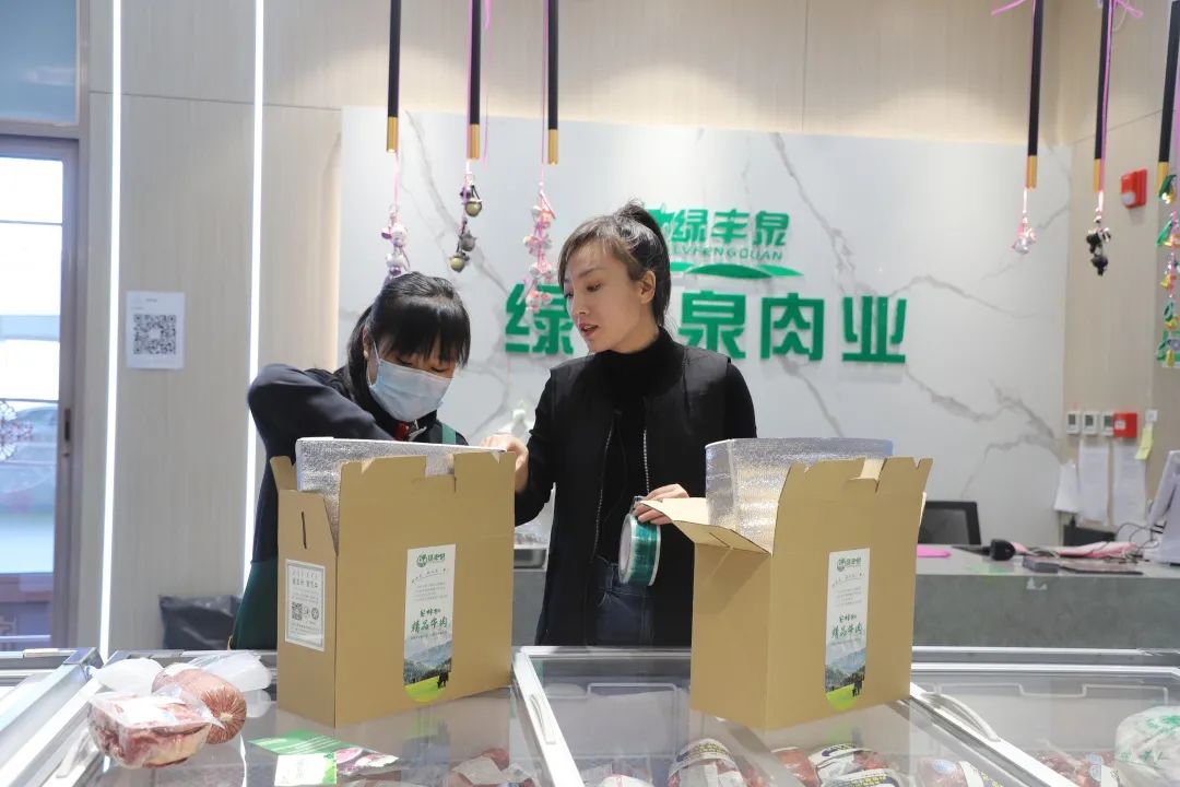“这个礼盒今天是要发往上海的,冰袋一定要放好,要保质保量送到上海……”刚走进绿丰泉肉业旗舰店内,就听见副店长董慧正在和销售人员打包安格斯牛肉礼盒。通过精准分割、密封打包,并采用严格的冷链管理技术,这些精品牛肉将通过物流送到千里之外的食客餐桌上。“从开业至今屠宰量大约在百余头左右,出肉应该在3—4吨,除供应本地百姓食用外还有外地的客户来选购牛肉。”绿丰泉肉业旗舰店副店长董慧说。