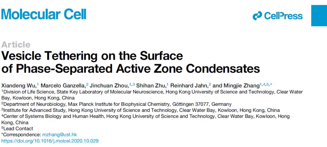 【前沿进展】张明杰组报道相分离介导突触小泡定位到突触前膜活性区的机制