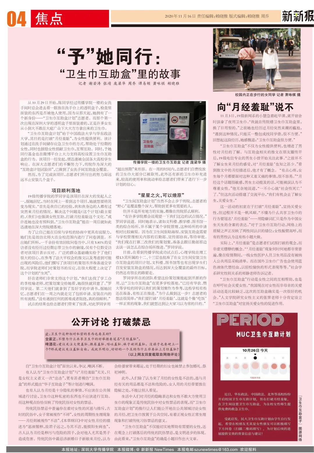 原标题:《新声代 | “予”她同行: “卫生巾互助盒”里的故事》