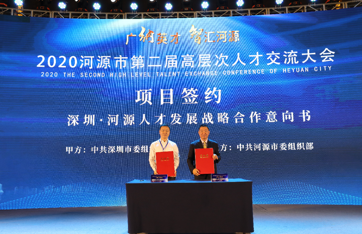 今天上午,深圳市委组织部与河源市委组织部签订人才发展战略合作意向书,进一步强化深圳与河源人才的交流协作,发挥深圳的人才资源、科技资源、产业资源、政策资源优势,优先辐射带动河源;发挥河源的生态资源、自然资源和人力资源优势,优先支持服务保障深圳,实现优势互补、资源共享、协同聚才、合作双赢。