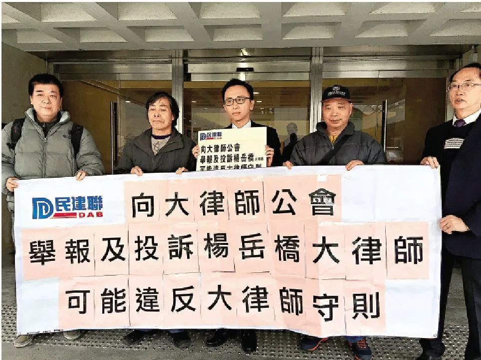 2011年,杨岳桥加入公民党,但在当年的区议会选举中落败。2014年9月26日,香港发生“占领中环”行动,历时79天。嗅觉灵敏的杨岳桥看到了上位的机会。他担任义务律师代表团发言人,协助骚乱中被拘捕的人士,陪同他们前往警署录口供,以及提供法律意见。